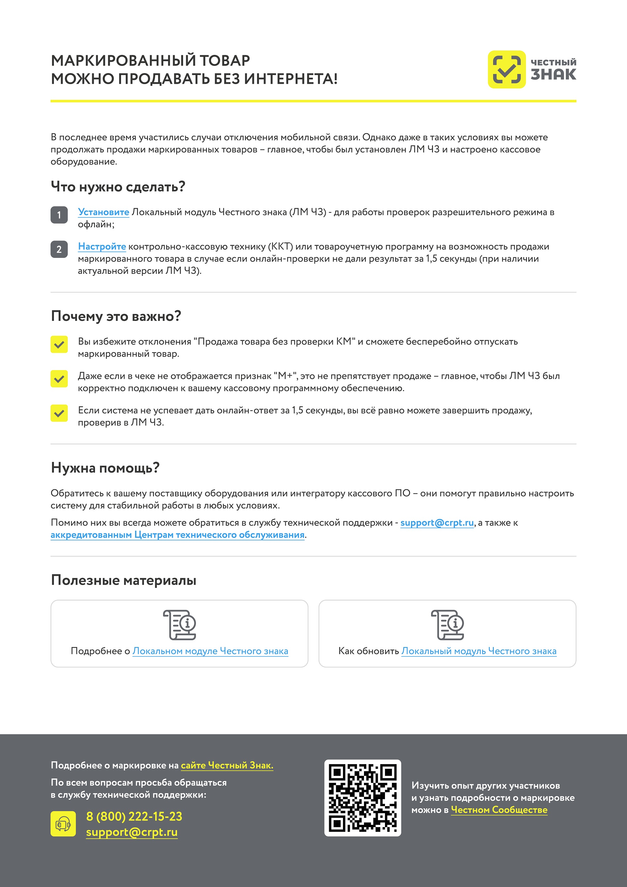 Напоминаем, что за передачу товаров юридическому лицу без отправки информации о ней в систему маркировки, а также за нарушение сроков передачи сведений в систему предусмотрена административная ответственность. Подробнее: https://честныйзнак.рф/penalties/.
