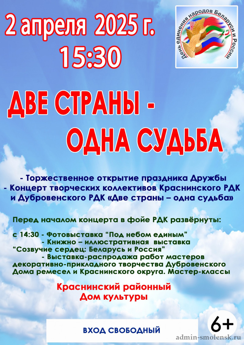 2 апреля состоится праздничный концерт ко Дню единения народов России и Беларуси