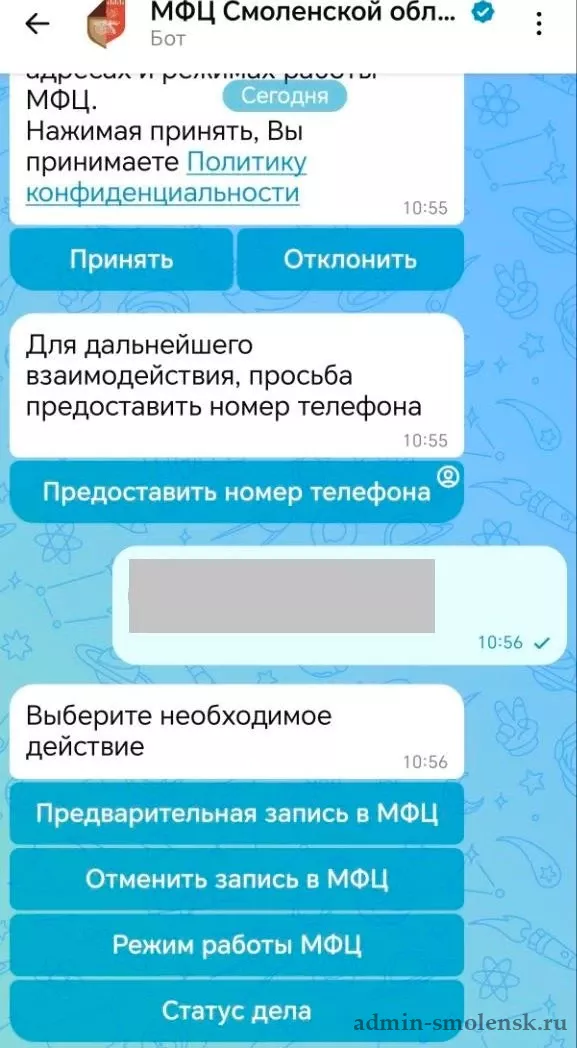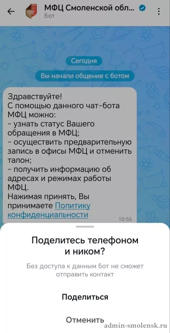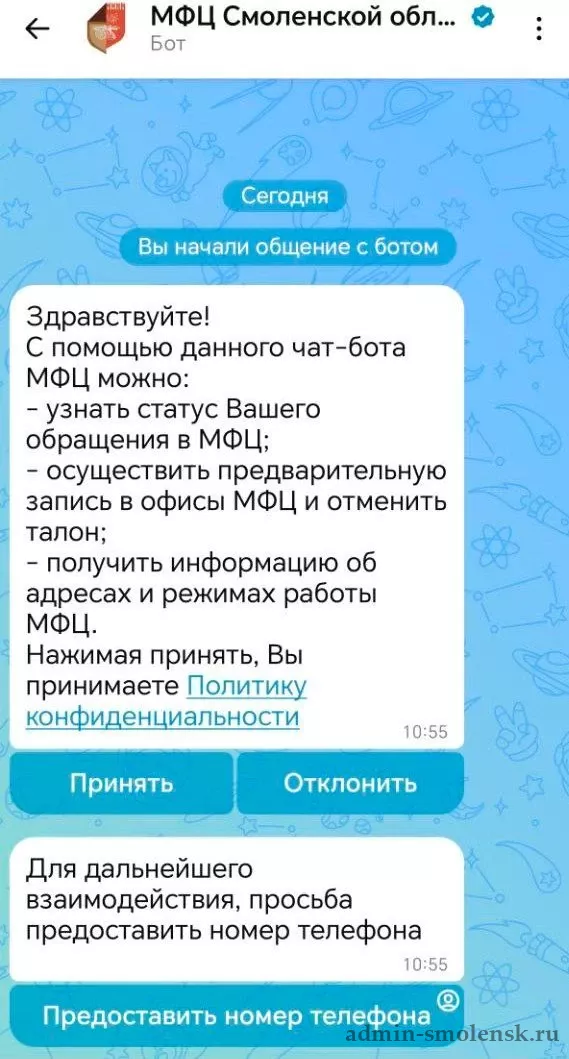 Чат-бот МФЦ Смоленской области в национальном мессенджере МАХ
