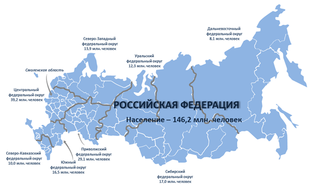 На начало 2021 года, по оценке, на территории России проживает 146,2 миллиона человек, представители более 160 национальностей. На территории Смоленской области – 921,1 тыс. человек.