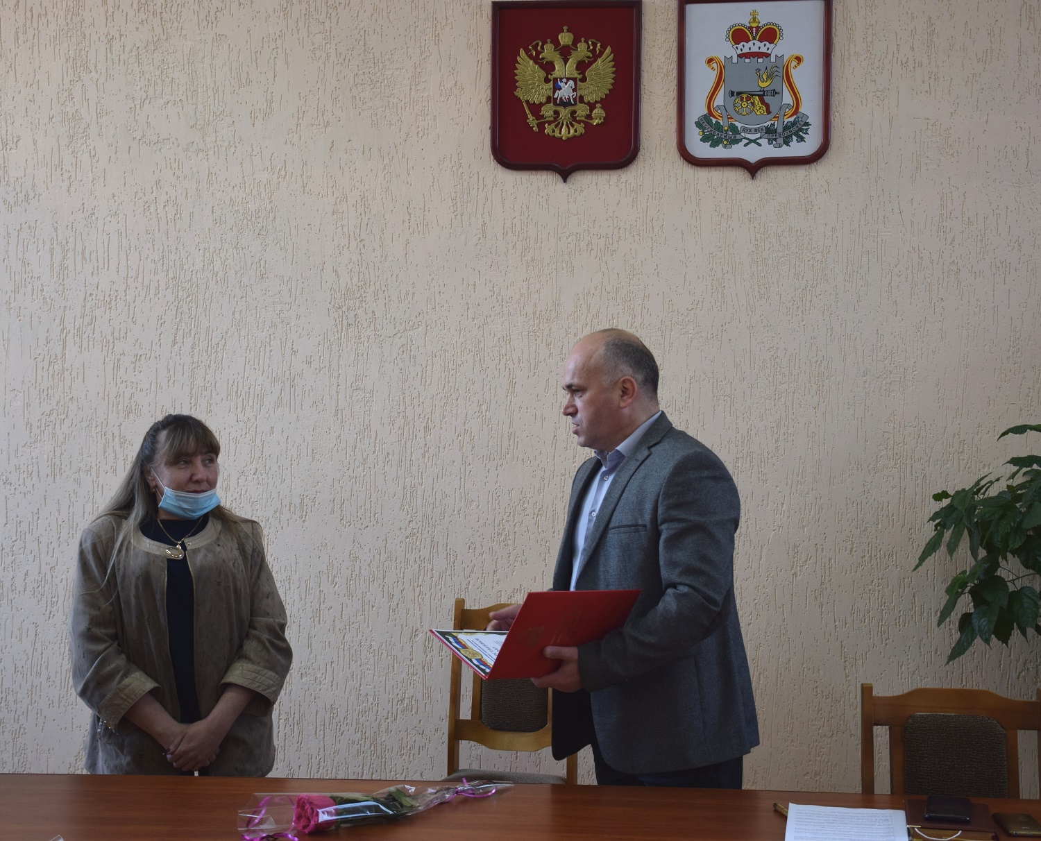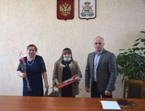 Перед началом рабочего совещания Сергей Валентинович Архипенков поздравил бывшего начальника отдела Смоленского областного государственного казенного учреждения «Центр занятости населения города Смоленска» в Краснинском районе Галанову Любовь Михайловну и ведущего инспектора отдела Тарасову Любовь Ивановну с 30-летием со дня образования государственной службы занятости населения Российской Федерации. Глава района отметил, что высокий профессионализм и ответственный труд сотрудников службы занятости вносит неоценимый вклад в социально-экономическое развитие Краснинского района и вручил Любови Михайловне и Любови Ивановне благодарственные письма за большой вклад в развитие системы государственной службы занятости населения в муниципальном образовании «Краснинский район» Смоленской области.