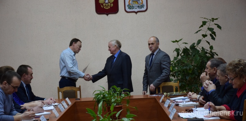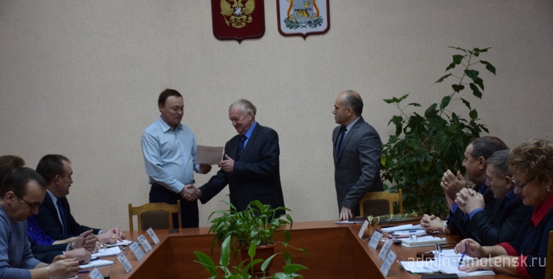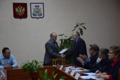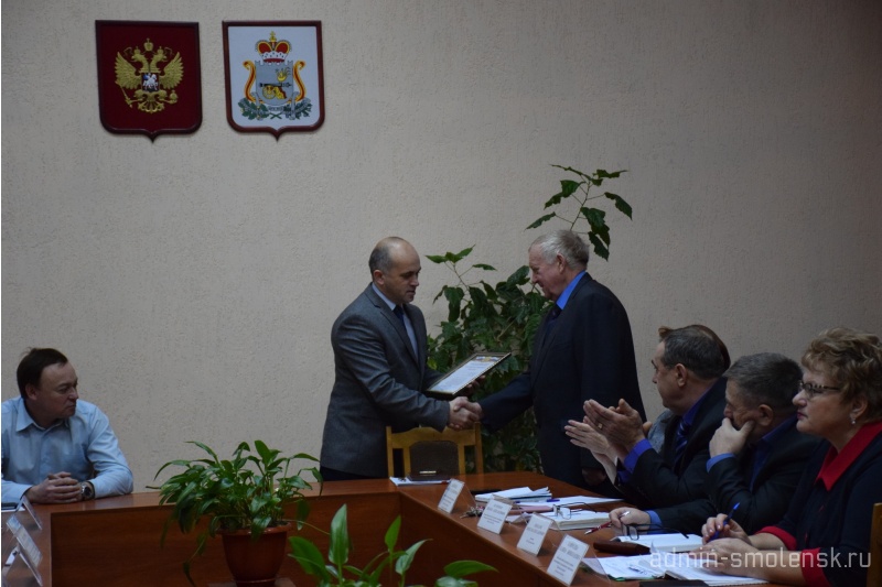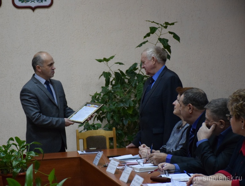 Перед началом работы участников рабочего совещания Сергей Валентинович вручил благодарственное письмо Администрации муниципального образования «Краснинский район» Смоленской области покинувшему свой пост в связи с выходом на пенсию Владимиру Афанасьевичу Боханову, замещавшему с 2002 года должность заместителя Главы (Главы Администрации) муниципального образования «Краснинский район» Смоленской области. После поздравительных слов Главы муниципального образования со словами благодарности за многолетний труд в адрес Владимира Афанасьевича выступил председатель Краснинской районной Думы Игорь Владимирович Тимошенков, вручивший экс-заместителю Почетную грамоту Краснинской районной Думы.