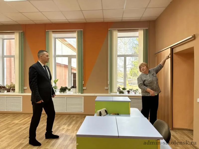 Глава Краснинского округа Максим Владимирович Мищенко посетил центральную библиотеку, где лично проконтролировал ход ремонтных работ.