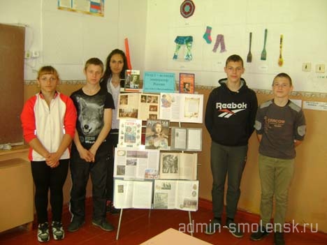 22 мая работники Краснинской центральной районной библиотеки в Глубокинской средней школе (МБОУ Глубокинская СОШ, д. Двуполяны, Краснинский район) для учащихся 6-11-х классов провели путешествие в прошлое «Он один есть целая всемирная история», посвященный 345-летию со дня рождения Петра I.