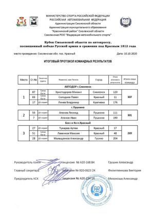 Итоги Кубка Смоленской области по автокроссу, посвященного победе Русской армии в сражении под Красным 1812 года