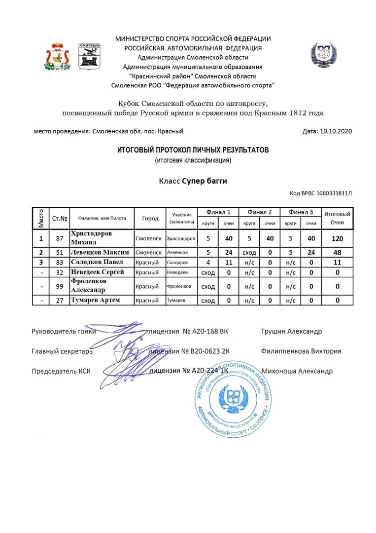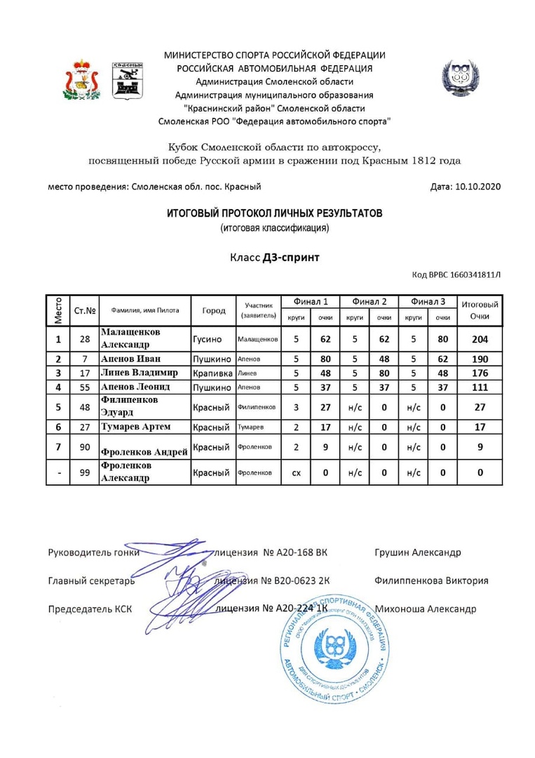 Итоги Кубка Смоленской области по автокроссу, посвященного победе Русской армии в сражении под Красным 1812 года