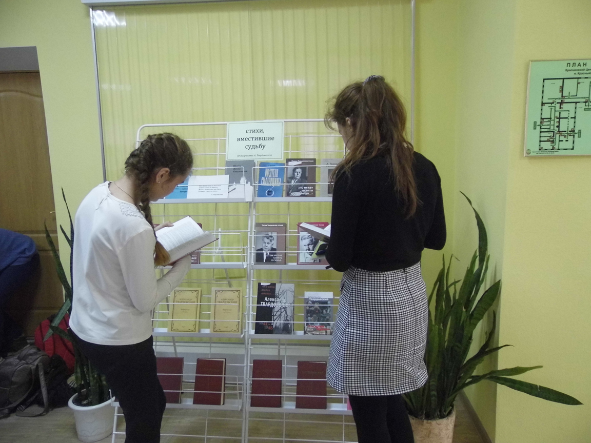 Во время бесед ребята познакомились с творчеством смоленского поэта, с книгами, рассказывающими о нём, особое внимание было уделено. Прозвучали стихи, отрывки из поэм А.Т. Твардовского, с интересом учащиеся прослушали воспоминания художника О. Верейского из книги «Воспоминания об А. Твардовском».