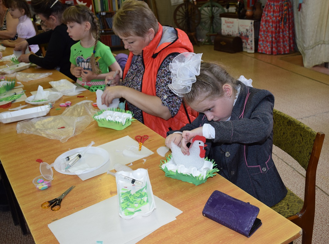 В целях популяризации семейных форм устройства детей-сирот и детей, оставшихся без попечения родителей, профилактики возврата детей вышеуказанной категории из замещающих семей в интернатные организации и проведении активного семейного отдыха, 24 апреля в читальном зале МУК «Краснинская районная библиотека» был проведен мастер-класс для замещающих семей «Мы – вместе!» по изготовлению пасхальных сувениров. Мероприятие было подготовлено и проведено силами коллектива Центра воспитательной работы и детского творчества: и.о. директора Центра С.Е.Борисенкова, педагоги - Л.И.Власенкова, И.В.Киселева, при участии специалистов сектора по опеке и попечительству отдела образования Администрации МО «Краснинский район».