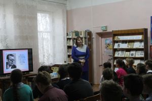 Вначале была представлена презентация по данной теме, которую подготовила учащаяся Гусинской средней школы Воронина Екатерина, затем библиотекарь остановилась более подробно на биографии и трудовой деятельности поэта, на его заслуженных наградах.