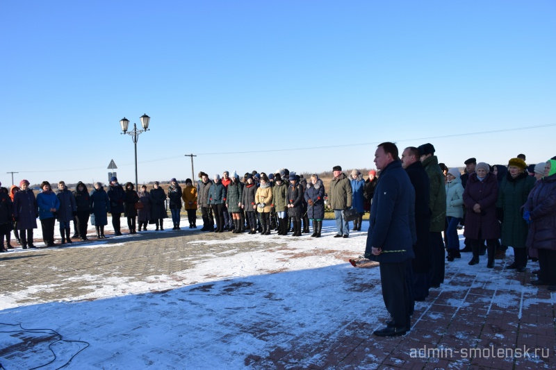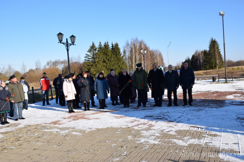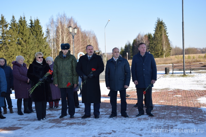 В мероприятии приняли участие Глава муниципального образования «Краснинский район» Смоленской области С.В. Архипенков, председатель Краснинской районной Думы И.В. Тимошенков, сотрудники органов местного самоуправления муниципального образования «Краснинский район», начальник отделения в г. Рудня пограничного управления ФСБ России по Смоленской области Е.В. Романенков, представители делегаций учреждений и организаций п. Красный, жители Краснинского района, учащиеся Краснинской СШ.