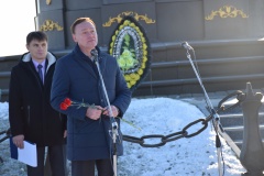 «Город Красный яркой страницей вошел в историю Отечественной войны 1812 года. В захваченном французами городе и его окрестностях развернул активную борьбу с врагом первый на смоленской земле партизанский отряд под командованием Семена Архипова. Мы горды тем, что Красный оказался первым русским городом, спутавшим планы Наполеона добиться легкой победы. 2 августа 1812 года Красный подвергся нападению главных сил армии Наполеона. Здесь 27 пехотная дивизия генерала Неверовского оказала упорное сопротивление французским войскам, не допустив их прорыва в тыл 1-й и 2-й русских армий. Сражение под Красным 3-6 ноября 1812 года вошло в историю как яркое проявление героизма русского народа в борьбе за свободу и независимость своей Родины. И сегодня у нас есть хороший повод вновь почувствовать гордость за мужество своих предков в битвах с полчищами иноземцев, ощутить удивительную энергетику этого исторического места и унести в душе новые частицы любви и уважения к культурному и историческому наследию нашей земли. Убежден, что лишь сохраняя искреннее уважение к прошлому, к нашей истории, к ратному подвигу предков, к чести и мужеству солдат, исполнявших свой воинский долг, мы сможем идти вперед, развиваться, благоустраивать нашу жизнь и общий дом,» - сказал Глава муниципального образования «Краснинский район» Смоленской области С.В. Архипенков. Также с приветственной речью и поздравлением выступил председатель Краснинской районной Думы И.В. Тимошенков.