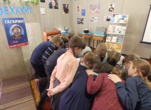 Юные посетители музея рассмотрели выставку «Космос в фалеристике и открытках», послушали рассказ о космосе, развитии отечественной космонавтики, о лётчиках – космонавтах, об успехах России в освоении космического пространства и научных открытиях. Посмотрели фильм о Юрии Гагарине. Также ребята, перевоплотившись в космонавтов, выполнили интересные задания на смекалку, быстроту и ловкость. Сотрудники музея подарили детям комплект закладок «Слово о Гагарине», прочитав информацию на них, ребята смогут узнать о жизни первого космонавта земли Юрия Алексеевича Гагарина.