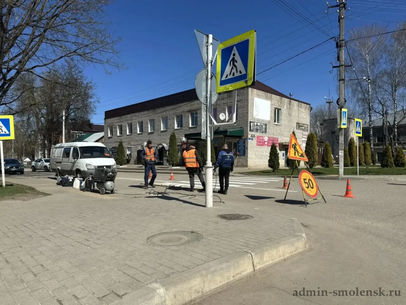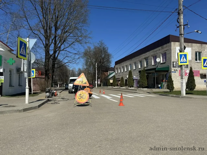 На территории Краснинского округа начались работы по нанесению дорожной разметки