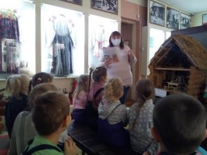 В Краснинском краеведческом музее имени супругов Ерашовых прошло очередное занятие объединения "Юный краснинец" с воспитанниками детского сада "Родничок", посвященное теме "Виды жилищ наших предков".