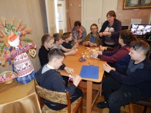 10 марта - в среду «лакомку» гостями музея стали обучающиеся 4 «Б» класса Краснинской средней школы, посещающие объединение «Юный краевед». Кружковцев познакомили с историей и традициями празднования Масленицы на Руси. Также сотрудники музея провели с ребятами мастер-класс по изготовлению масленичного сувенира к празднику.
