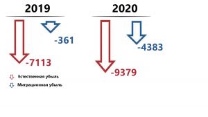 Основной причиной сокращения численности населения остается естественная убыль, то есть превышение числа смертей над числом рождений. На протяжении трех последних лет ее дополняет и миграционная убыль. В 2020 году потери населения области за счет естественной убыли составили 9,4 тыс. человек, миграционной убыли – 4,4 тыс. человек. По сравнению с 2019 годом естественная убыль населения области увеличилась на 32%.