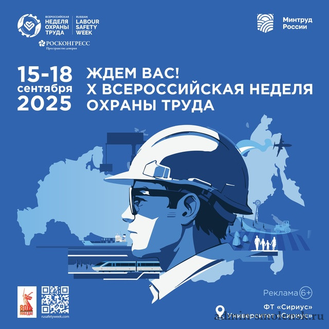 X Всероссийская неделя охраны труда (ВНОТ) состоится с 15 по 18 сентября 2025 года на территории Университета «Сириус» (Федеральная территория «Сириус»).