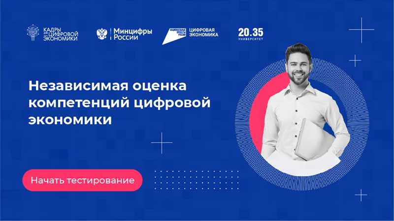 Минцифры России сообщает о запуске общедоступного сервиса независимой оценки компетенций цифровой экономики (НОК ЦЭ), созданного в рамках федерального проекта «Кадры для цифровой экономики» национальной программы «Цифровая экономика».