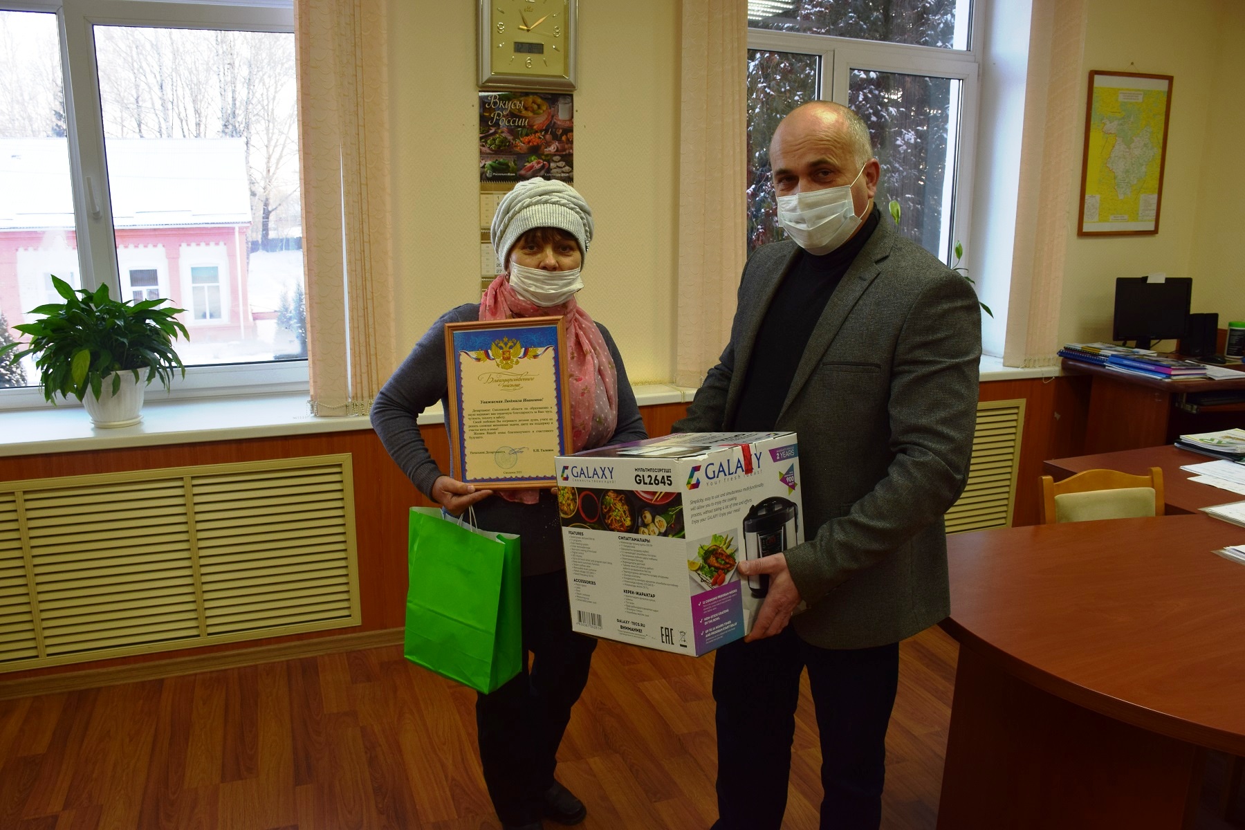 Сегодня, 8 декабря 2021 года, Глава муниципального образования «Краснинский район» Смоленской области Сергей Валентинович Архипенков вручил Благодарственное письмо Департамента Смоленской области по образованию и науке и памятный подарок Людмиле Ивановне Левшенковой, которая является приемным родителем с 2008 года.