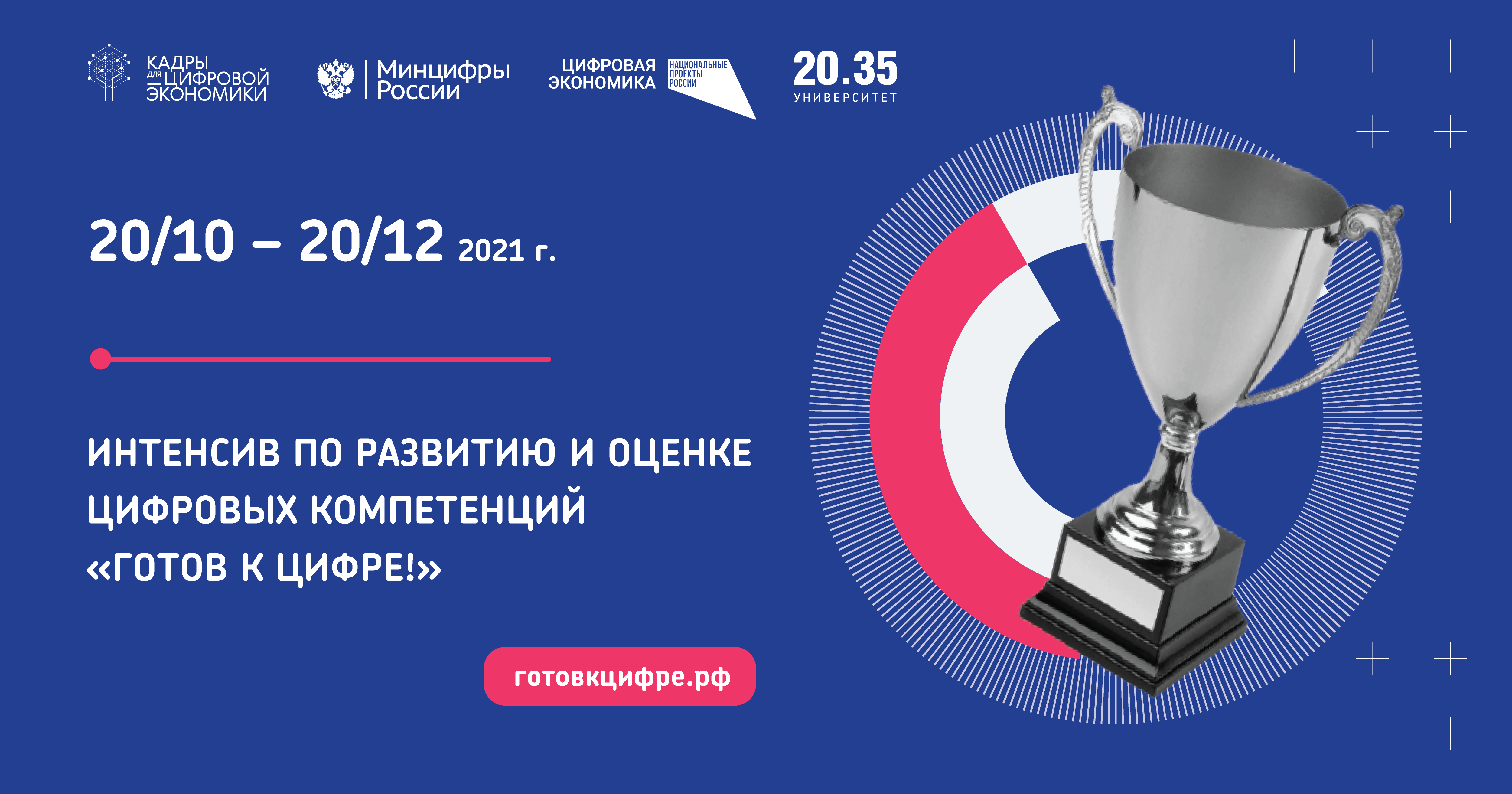 Минцифры России совместно с Университетом 2035 и Консорциумом по развитию цифровой грамотности и компетенций цифровой экономики запустили интенсив по развитию и оценке цифровых компетенций «Готов к цифре!».