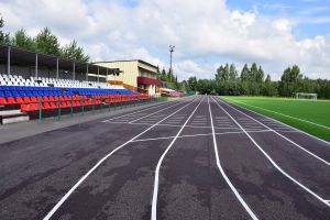 20 июля Глава района Сергей Валентинович Архипенков посетил стадион "Восток", где ознакомился с ходом выполнения работ по нанесению разметки на беговые дорожки.