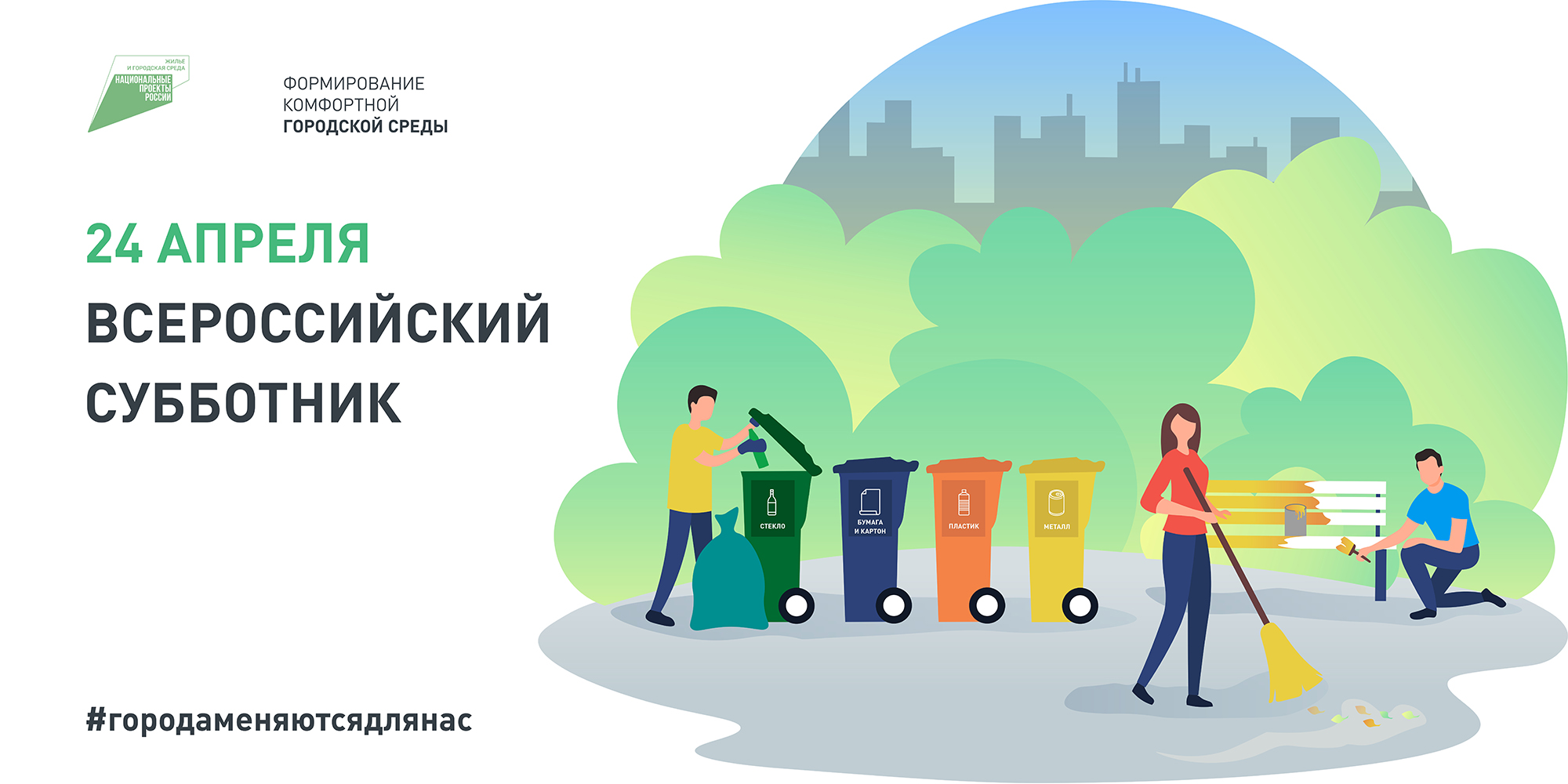 24 апреля 2021 года в рамках федерального проекта «Формирование комфортной городской среды» на территории Краснинского района пройдет Всероссийский субботник.