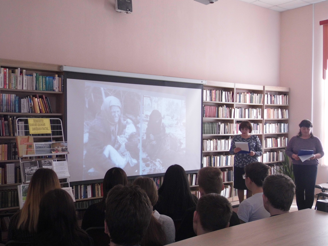 12 апреля в центральной районной библиотеке провели урок-память «Нам не помнить об этом нельзя…», посвященный Международному дню освобождения узников фашистских концлагерей. Его участниками стали учащиеся 9-го класса Краснинской СОШ.