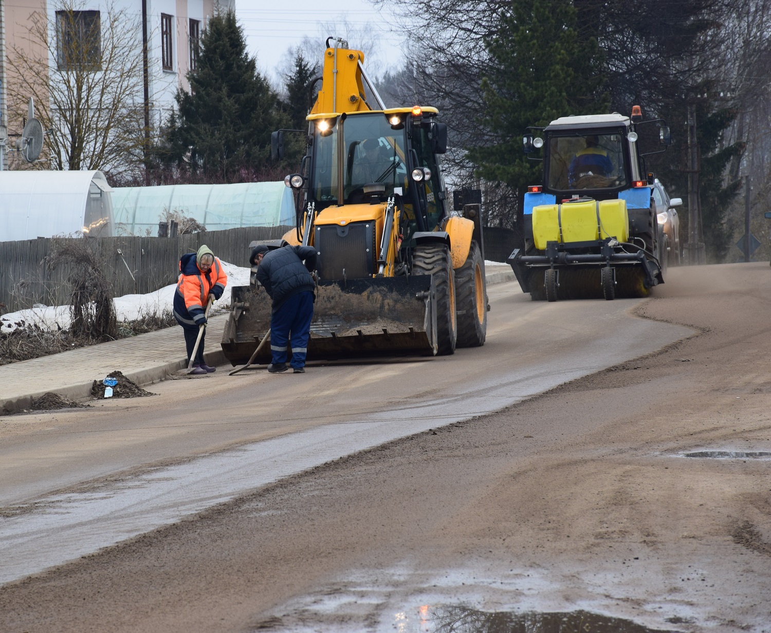 С наступлением устойчивой плюсовой температуры началась очистка дорог и обочин от песка и пыли.