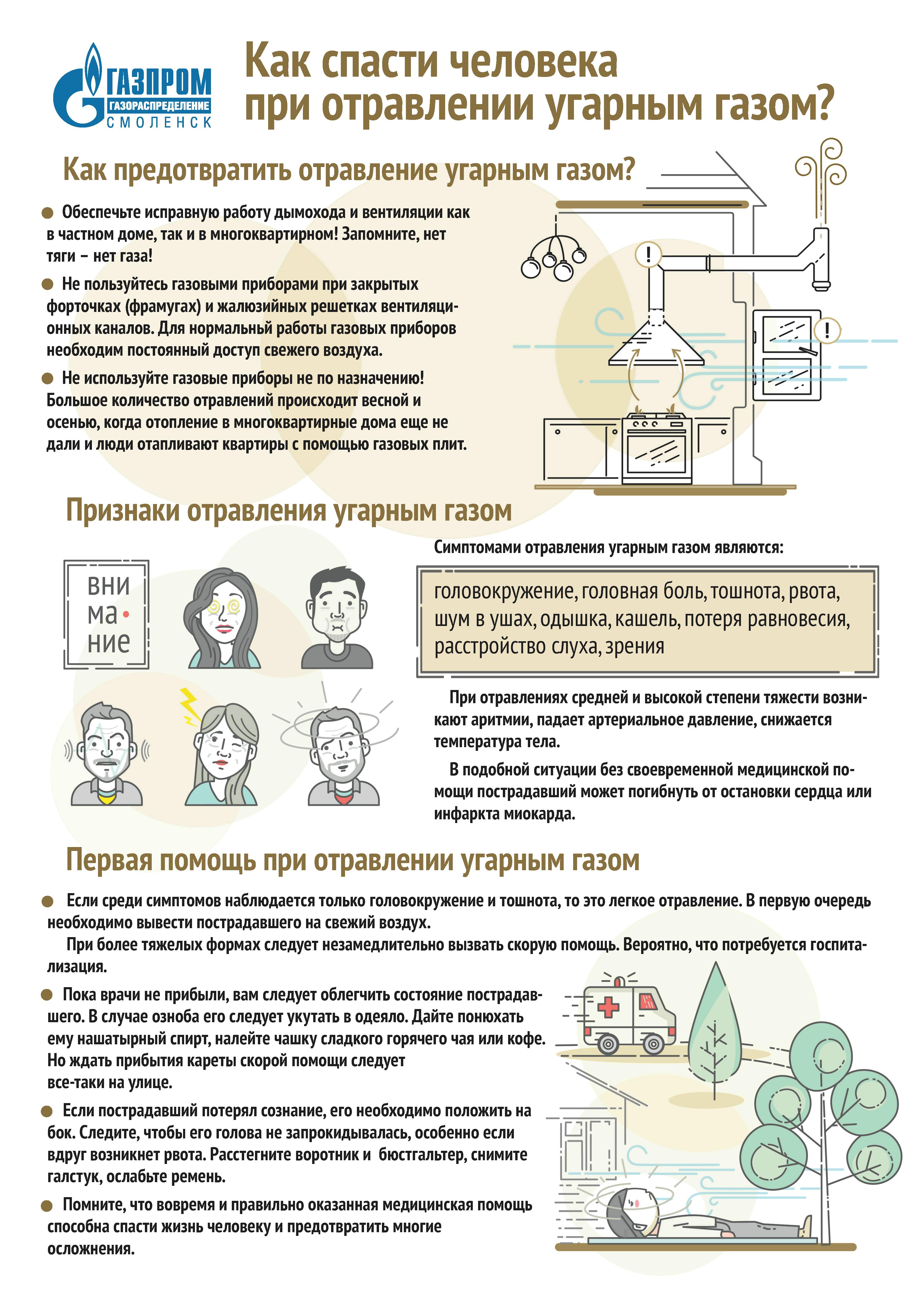 Главное управление «Государственная жилищная инспекция Смоленской области» информирует о том, что по итогам 2020 года, из числа происшествий, связанных с эксплуатацией газоиспользующего оборудования на территории Российской Федерации участились случаи отравления угарным газом.