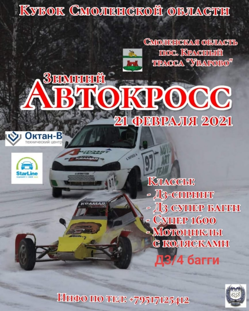 21 февраля 2021 года на подготовленной трассе «Уварово» в Краснинском районе Смоленской области состоятся открытые областные соревнования по автокроссу, посвященные Дню защитника Отечества.