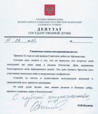 Сегодня, 15 февраля, в День памяти о россиянах, исполнявших служебный долг за пределами Отечества, у Памятника воинам, погибшим в локальных войнах и горячих точках, состоялся митинг.