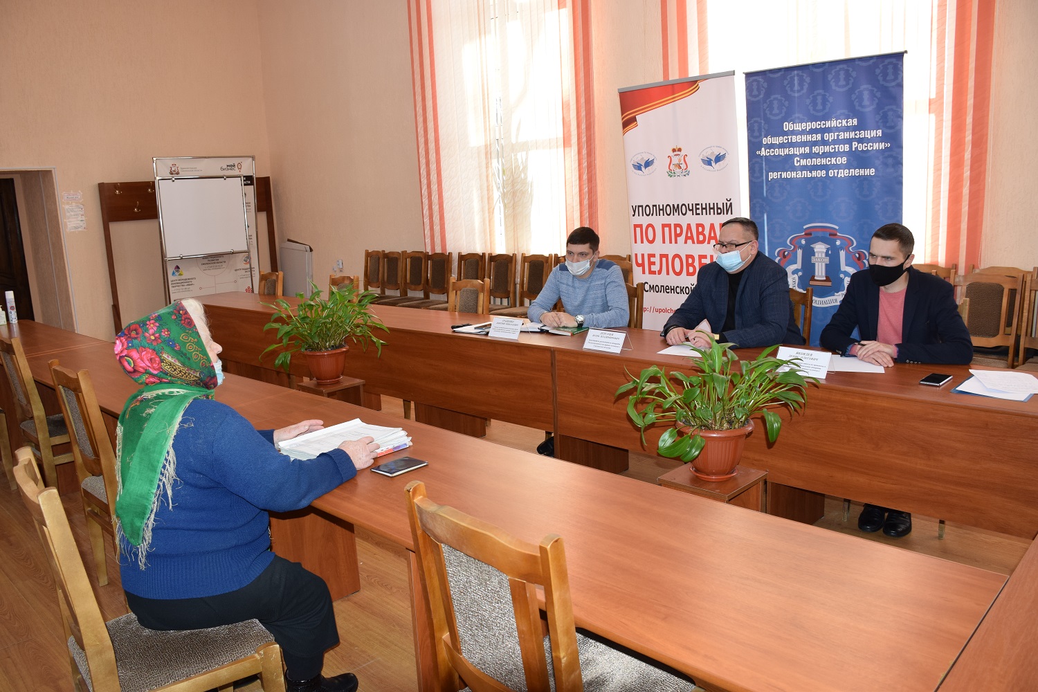 В рамках соглашения о сотрудничестве в сфере правового просвещения и оказания бесплатной юридической помощи 15 февраля 2021 года сотрудники аппарата Уполномоченного по правам человека в Смоленской области совместно с членами Смоленского регионального отделения Ассоциации юристов России и специалистами Государственной инспекции труда в Смоленской области провели выездной прием граждан в Краснинском районе. В организации и проведении приема участвовали сотрудники администрации муниципального образования.