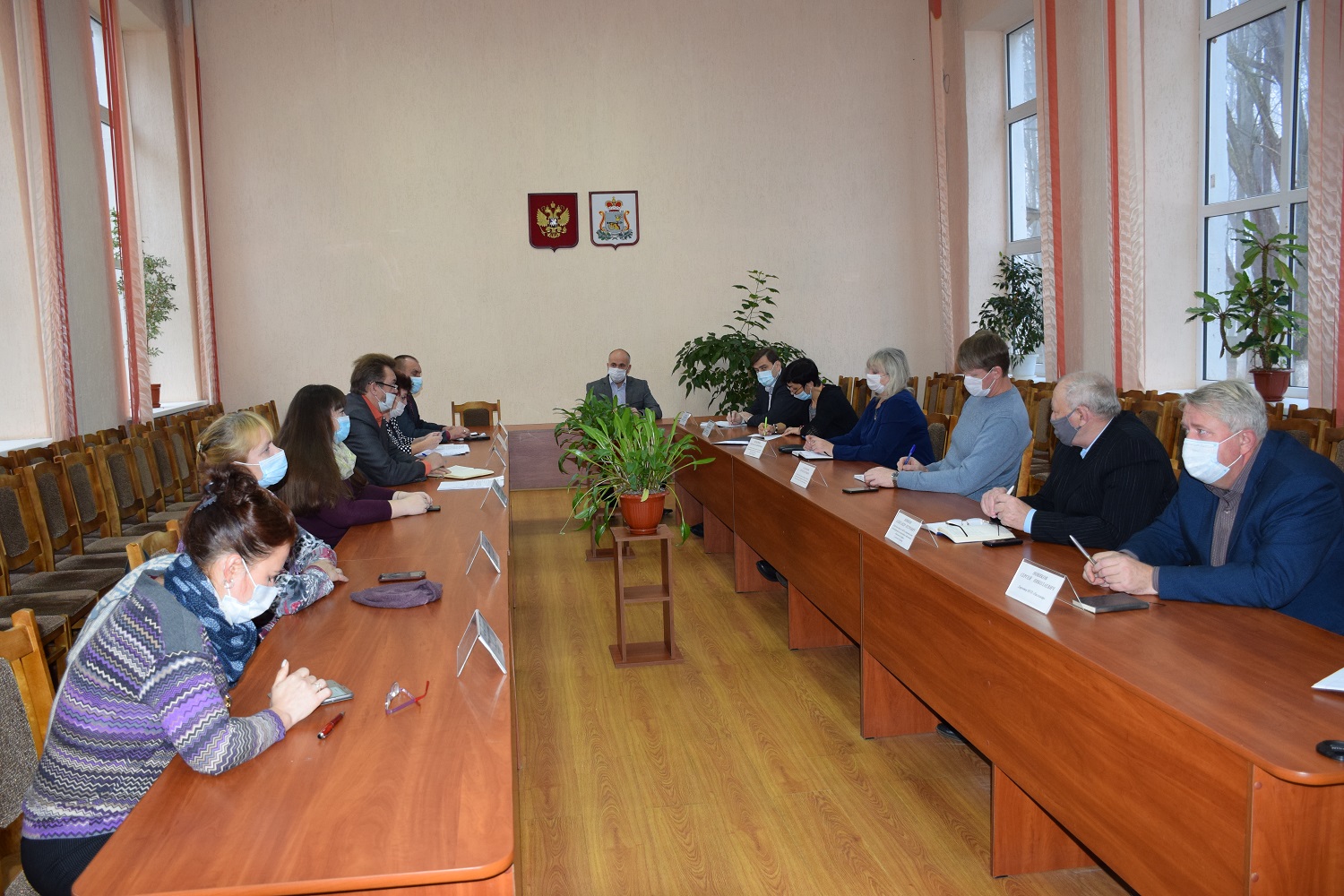 9 ноября 2020 года Глава муниципального образования «Краснинский район» Смоленской области С.В. Архипенков провел еженедельное рабочее совещание, в котором приняли участие руководители структурных подразделений Администрации, руководитель муниципального унитарного предприятия «Пассажир», главный врач ОГБУЗ «Краснинская центральная районная больница» С.В. Ярунова.