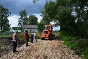 30 июля 2020 года Глава муниципального образования «Краснинский район» Смоленской области Сергей Валентинович Архипенков ознакомился с ходом выполнения работ по ремонту проезжей части автомобильной дороги по улице Дачная и переулку Дачный в деревне Храпово. В настоящее время производится отсыпка дороги из песчано-гравийной смеси и щебня.