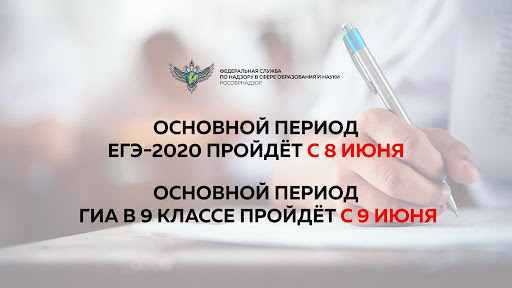 Срок начала основного периода единого государственного экзамена (ЕГЭ) 2020 года будет перенесен на 8 июня, основного государственного экзамена (ОГЭ) для выпускников 9 классов – на 9 июня. Такие решения готовятся Министерством просвещения Российской Федерации и Федеральной службой по надзору в сфере образования и науки в связи со складывающейся эпидемиологической обстановкой и объявлением нерабочими дней с 30 марта по 3 апреля.