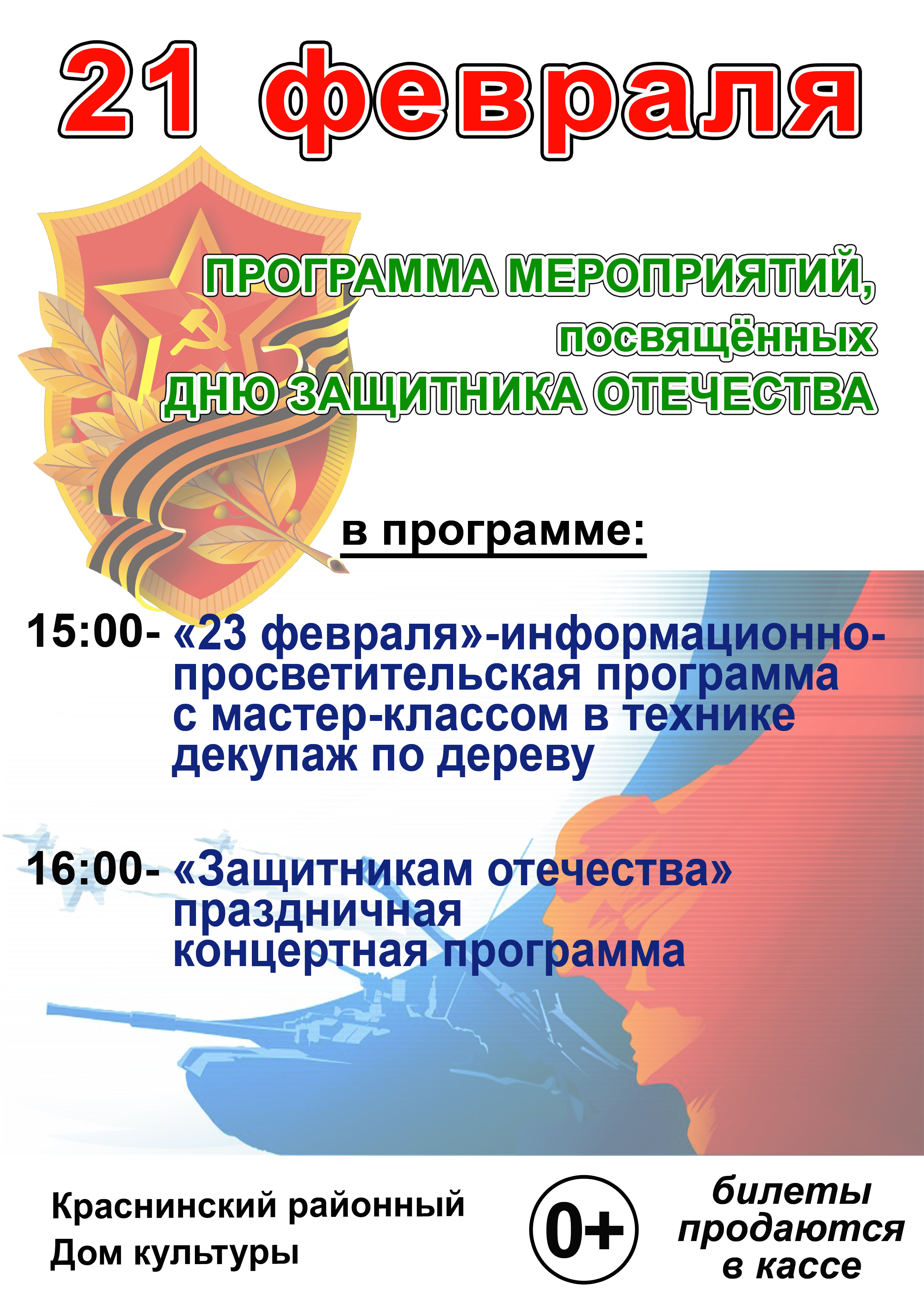 23.02.2020г. с 10.00 до 17.00 проводится информационно-агитационная акция «Военная служба по контракту в Вооруженных Силах Российской Федерации- твой выбор», по адресу г.Смоленск ул.Черняховского, д.29, Дворец спорта «Юбилейный»