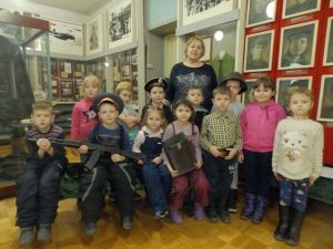 18 февраля, накануне Дня Защитника Отечества, в музее прошло занятие краеведческого кружка «Юный краснинец» с воспитанниками детского сада «Родничок», которое называлось «Буду в Армии служить».