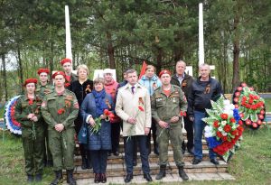 В возложении цветов приняли участие ребята из Местного отделения Всероссийского детско- юношеского военно- патриотического общественного движения «Юнармия» Краснинского района Смоленской области. Братское захоронение 412-воинов, появилось благодаря Международной вахте памяти, которая проходила в июле 1996 года.