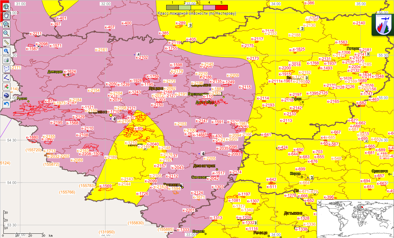 Ежедневно диспетчерами РДС лесного хозяйства Смоленской области обрабатывается более сотни термоточек – тепловых аномалий на поверхности Земли, выявленных с помощью спутника. На сегодняшний день зарегистрировано более 2 тыс. термоточек общей площадью около 300 тыс. га.