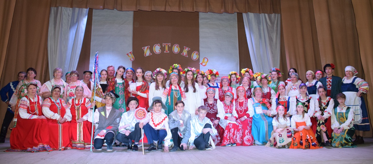 18 апреля в Краснинском РДК, состоялся районный фестиваль «У истоков». В фойе Дома культуры была оформлена выставка декоративно прикладного творчества «Живая нить старины». Перед началом фестиваля в фойе работала зона дегустации русских традиционных обрядовых блюд, где присутствующие могли попробовать разнообразные блюда, от холодца до компота из сушеных фруктов. Для гостей фестиваля проводился мастер- класс по изготовлению обереговой куклы «Столбушки».