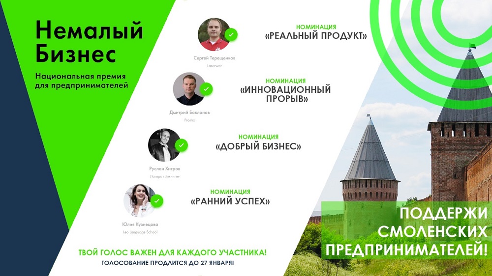 Министерством экономического развития Российской Федерации совместно со Школой Бизнеса «Синергия», бизнес-сообществами «Деловая среда» и «Бизнес Молодость» в 2019 году впервые учреждена Национальная премия «Немалый бизнес», которая станет главной ежегодной премией страны для малого и среднего бизнеса и охватит предпринимателей из 85 субъектов Российской Федерации.