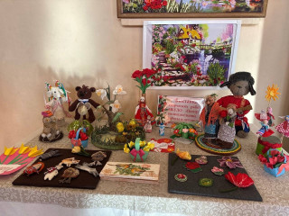 Перед началом программы в фойе была представлена тематическая выставка. Каждая работа — будь то картина или изделие ручного творчества — наполнена особой нежностью и талантом наших земляков.