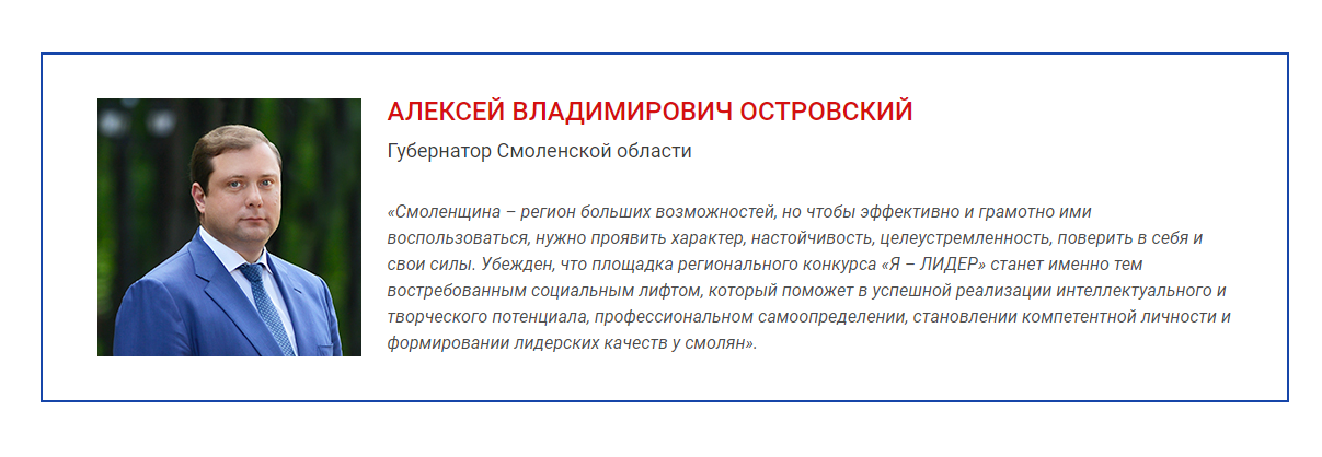С 3 августа начался приём заявок на участие в третьем региональном конкурсе «Я – ЛИДЕР», организованном по инициативе Губернатора Смоленской области Алексея Островского.