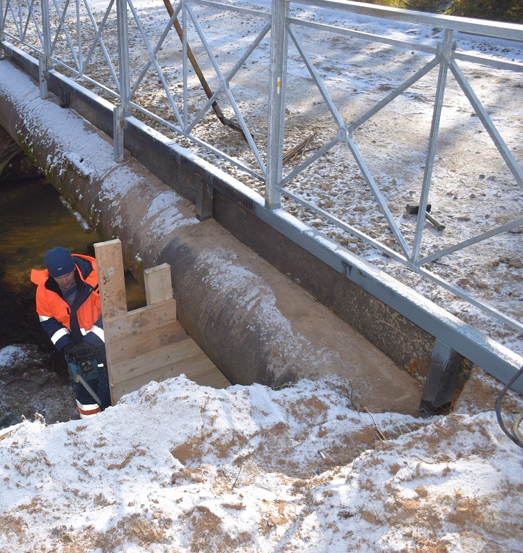 Также проводится ремонт переезда между д.Сырокоренье 1 - д.Сырокоренье 2.