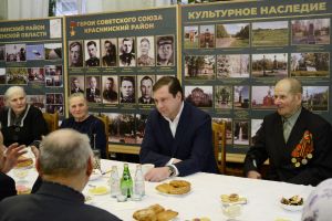Во время беседы глава региона поинтересовался, как в муниципальном образовании организована работа социальных служб с пожилыми людьми, в частности, с теми, кто проживает в отдаленных населенных пунктах. В свою очередь, Лилия Ивановна Хотулева, бывшая малолетняя узница, отметила, что в силу возраста у ветеранов возникает много бытовых вопросов, которые без посторонней помощи бывает сложно решить.