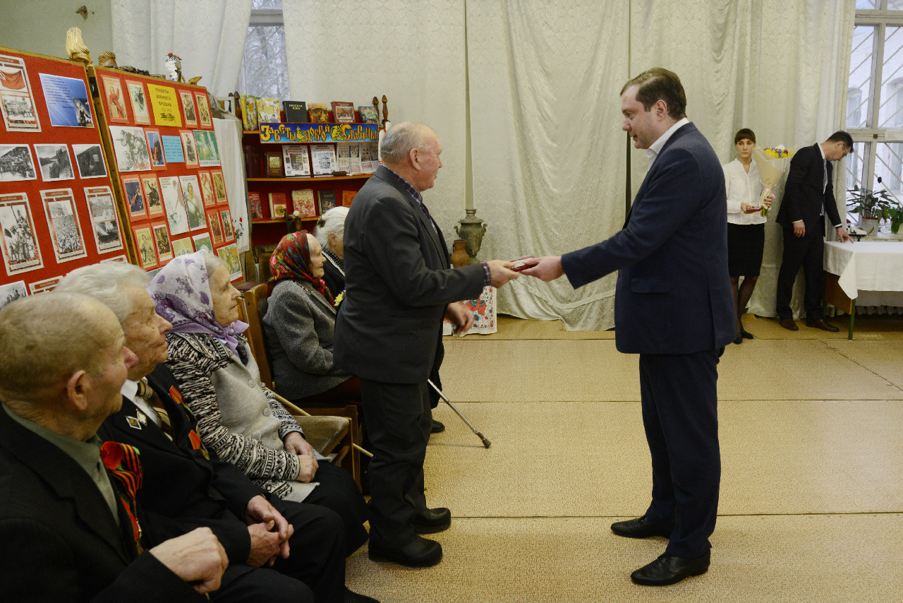 Алексей Островский: Здравствуйте, дорогие и глубокоуважаемые ветераны, рад вас приветствовать! Я к вам приехал, в первую очередь, по поручению Верховного Главнокомандующего Вооруженными Силами Российской Федерации, нашего Президента Владимира Владимировича Путина, а также по зову своего сердца и совести. Для меня большая честь вручить вам от имени главы государства юбилейные медали, посвященные 75-летию Великой Победы, которой мы обязаны вам, вашим товарищам – живущим, и, к сожалению, уже ушедшим из жизни.