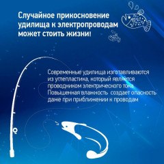 Выбирайте безопасное удилище. Удилища из углепластика проводят электрический ток. Повышенная влажность, мокрая леска создают смертельную опасность даже при отсутствии касания проводов – достаточно приблизиться к ним на недопустимое расстояние. Телескопическое удилище требует большого пространства для взмаха.
