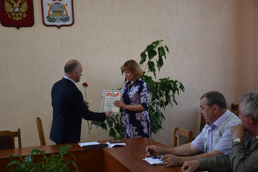 Перед началом совещание С.В. Архипенков в связи с празднованием Дня местного самоуправления вручил Благодарственные письма Департамента Смоленской области по внутренней политике Новикову А.Е - Главе муниципального образования Мерлинского сельского поселения Краснинского района Смоленской области, Пожиловой О.П - председателю территориального общественного самоуправления «Надежды» (Гусинское сельское поселение Краснинского района Смоленской области Морозовой А.С - Ведущему специалисту Администрации Мерлинского сельского поселения Краснинского района Смоленской области Волковой О.В- старшему менеджеру Администрации Малеевского сельского поселения Краснинского района Смоленской области за добросовестный труд, высокопрофессиональное исполнение служебных обязанностей.