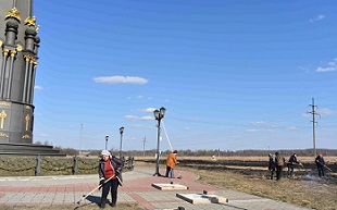 03 апреля на въезде в п. Красный у памятника «Героям Отечественной войны 1812 года» работники культуры организовали и провели субботник.