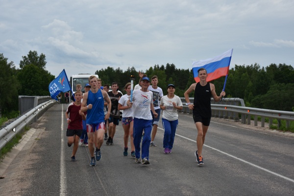 Затем участники факельной эстафеты направились к мемориальному комплексу «Защитникам Отечества», где к ним присоединились юные спортсмены поселка - Егоров Илья, Новиков Олег, Демидов Артем, Шляхтина Валерия, Голякова Марина, Плотникова Анастасия, Плотников Владимир, Писарев Максим, Ашмянцев Павел. После чего команда бегунов направилась в д.Гусино, где им так же была организована теплая встреча. Талантливые Гусинские легкоатлеты Котов Олег, Азацкий Даниил, Фомин Евгений, Лабушняк Олеся, Осипов Илья поучаствовали в эстафете и смогли подержать в руках главную ценность команды – факел Мира.